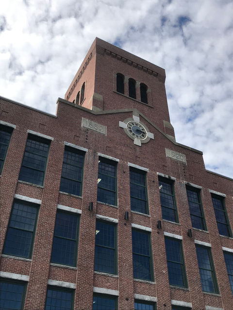Built in 1852 with Bates Mill No. 2, both were widened in 1923 and the iconic clock tower was added facing downtown Lewiston, Maine. Below the clock tower is the Atrium that connects both buildings and provides access to the center of the Bates Mill Complex. The building is a multifaceted structure with a pub, production brewery, museum and offices.
